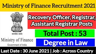 Ministry of Finance Recruitment 2021 #LaW_JOBS #central_govt_2021 #latest_sarkari_job_2021 #LLB_Jobs