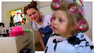 Ева в салоне красоты для детей. Красота страшная сила. Pretend play beauty salon. Princess makeup.