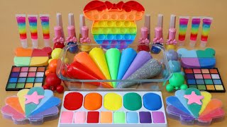 Mixing”Rainbow Kitty” Eyeshadow and Makeup,parts,glitter Into Slime!Satisfying Slime Video!★ASMR★