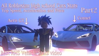 Robloxian high school all cars Stats - top speed - Acceleration - Price (Part 2)