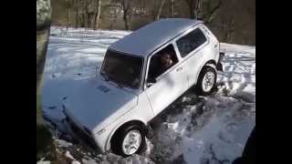 niva stuck in snow , niva off road in snow